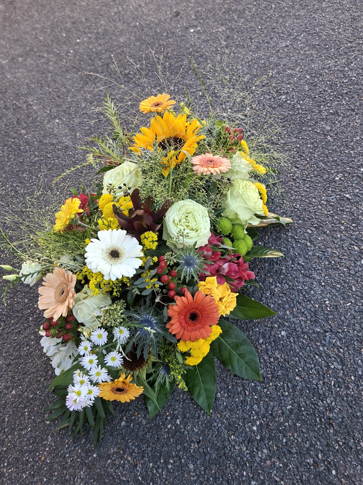 Assemblage composé de fleurs fraiches et de feuillage de saison. Les variétés de fleurs peuvent variées selon la saison et l’arrivage.