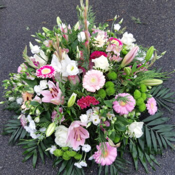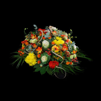 Assemblage composé de fleurs fraiches et de feuillage de saison. Les variétés de fleurs peuvent variées selon la saison et l’arrivage.